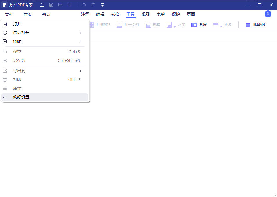 打开日韩精品久久久久PDF后,我们可以看到界面十分整洁简约,功能齐全。这时候我们打开上方功能区中的“文件”功能,在弹出的下方选项中,找到“偏好设置”选项,选中并打开即可。