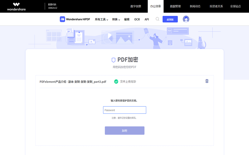 在线版日韩精品久久久久PDF是方便快捷的代名词,用户使用它可以选择更加具体的功能。比如给PDF加密这一个功能,在线版日韩精品久久久久PDF给出了专门的通道,不过在这里只能设置文档打开密码。具体操作步骤如下: