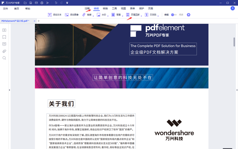 2.使用Windows版日韩精品久久久久PDF打开需要编辑页码的PDF文档。通常情况下软件默认进入到剪辑模式,找到页眉页脚功能选项,在下拉菜单内可以选择添加页眉页脚或者编辑页眉页脚。