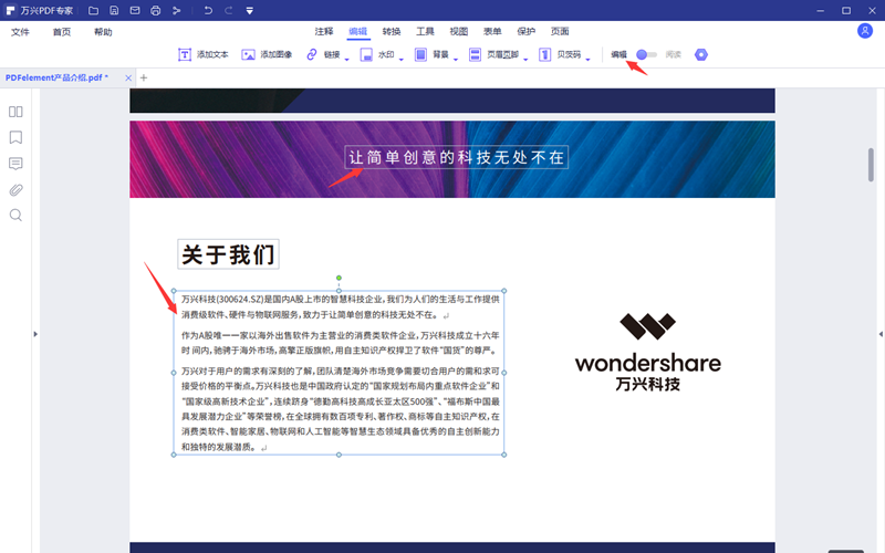 1.多需求更改PDF中的文字内容,只需用软件打开目标文档,在编辑工具界面的编辑和阅读选项中选择编辑。鼠标随便点击下pdf上的文字,整个文档的文字内容就会处于可编辑的状态。