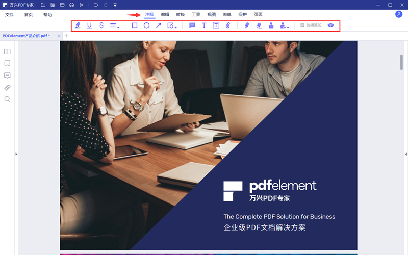 2.添加注释类文本,用户可以直接进入到注释功能界面里边有各种可供选择了注释类操作,可以满足大多数用户的对注释的需求。需要注意的是连续添加按钮默认是激活状态。