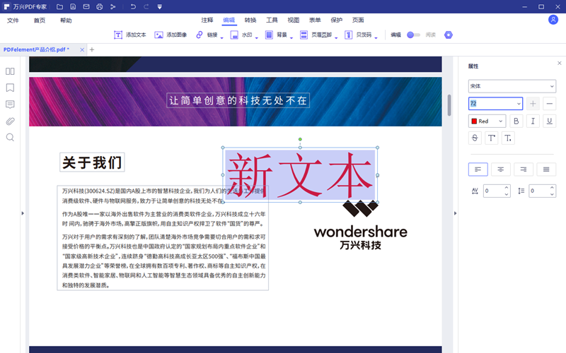 3.添加可编辑文本需要使用编辑工具中的添加文本功能。新的文本多种属性可以随时进行修改,文本的转移可以用鼠标拖动,需要放哪里就放哪里。