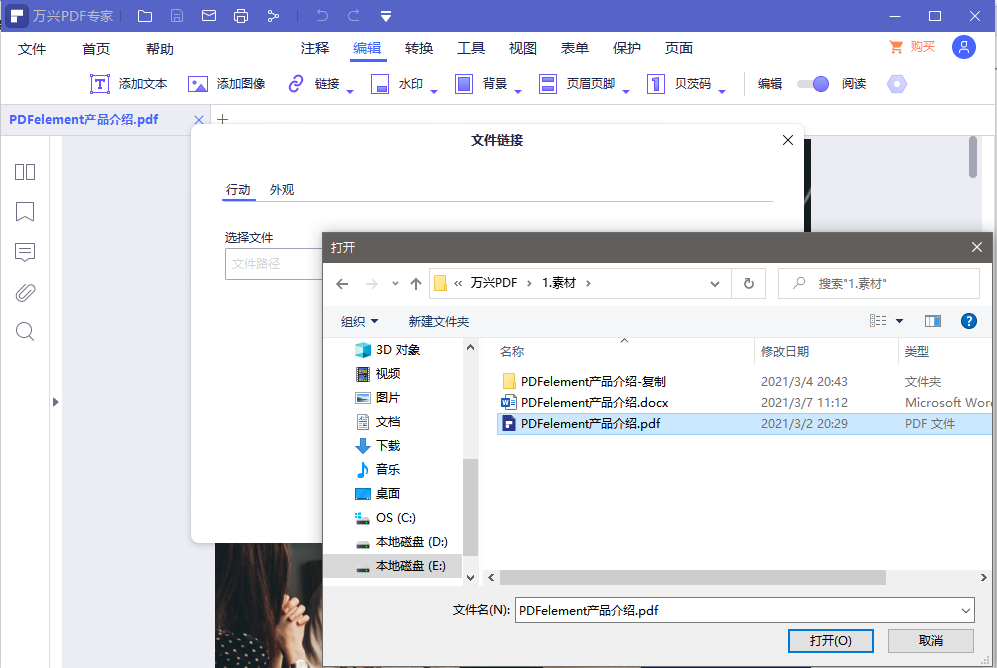 步骤一:首先运行“日韩精品久久久久PDF”客户端,然后点击“文件”选项,然后“打开”开启自己想要添加超链接的PDF文件。切换到编辑选项卡中,在工具栏中找到选择“链接”,然后单机“链接”按钮,然后会弹出三个超链接的形式分别为跳转页面、打开网页和打开文件。
