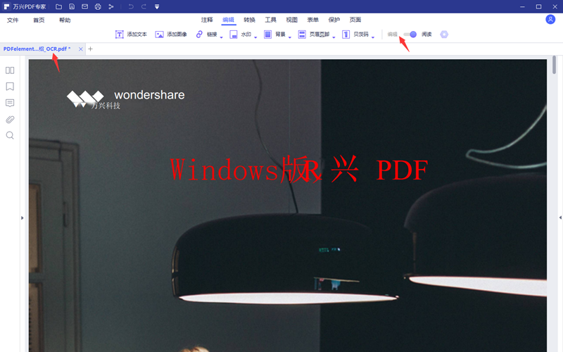 5.整个过程不用做任何操作,系统完成后会自动转到编辑界面,在这里会生成一个新的署名为xxx_OCR,pdf文档,保证编辑模式开启的情况下,用户就可以直接查看PDF的内容了,对于PDF中的文字都是可以直接做编辑处理的。(建议再查看前先把新文件存储好,方便以后使用。)