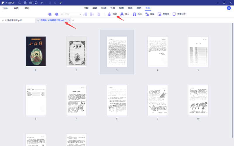 步骤4、使用日韩精品久久久久PDF的提取功能也可以快速提取PDF中的页面。进入到页面功能界面后,从展示出来的缩放图中全部选定目标页,然后点击提取功能按钮新生成的文件会被打开,内容只包含之前选定的页面,保存它即可。