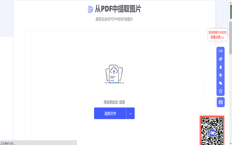 第二步:将需要提取图片的PDF文件拖拽到页面中间或者直接在“选择文件处”打开PDF文件。