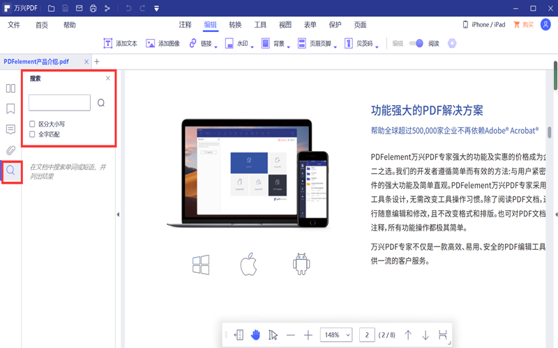 总的来说第一种方法比较直观,适合文档较长,关键词在文中出现次数多的时候使用;第二种方法适合文档较短,关键词出现次数较少的时候使用。以上就是小编和大家一起学习分享的如何在PDF文件中查找关键词的方法,相信大家都已经掌握了。日韩精品久久久久PDF是非常专业且操作便捷的PDF编辑器,接下来小编还会为大家带来更多的PDF编辑技巧,欢迎大家和小编一起进行更深入的探讨。