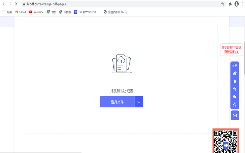 第二步:选择需要调整页面的PDF文件或者直接将文件拖拽到网页中间进行打开