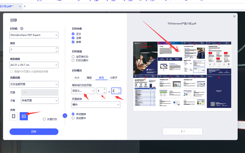 步骤5、自定义更能满足客户的个性化需求,但自定义有自己的潜在设定需要注意。自定义的实现方式是横向和纵向等分数的成绩为可以合并的最大页数。比如是X*Y。要想合成后的页面满页展示,纸张为竖向的时候需要Y大于X,当纸张方向为横向时X要大于Y。