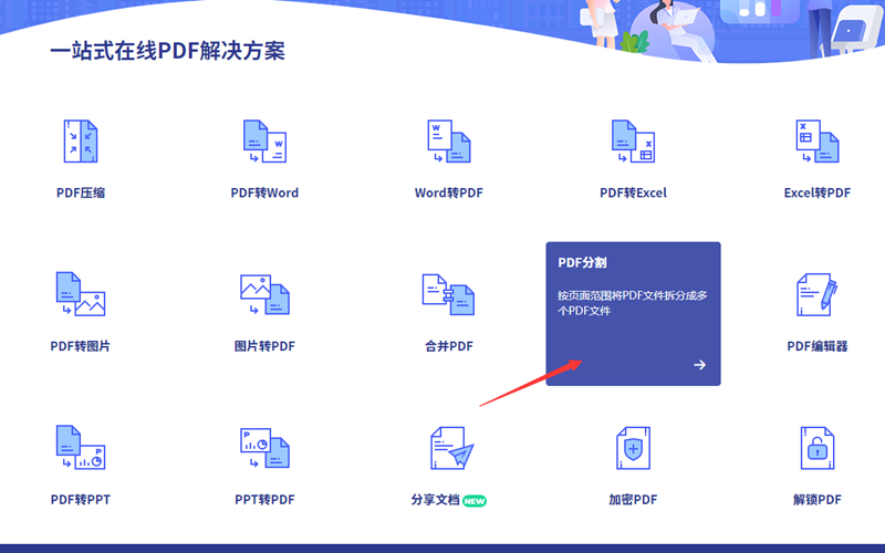 第一步、使用终端访问网址HiPDF网站,在主页面找到PDF分割项点击进入。