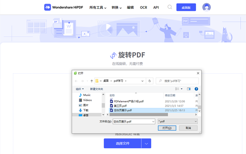 步骤2、在旋转PDF页面功能界面找到并上传需要处理的PDF文档。文件上传完毕后会自动转入到编辑界面。(需要注意的是这里上传的文件不能大于10M,如果是VIP用户可以扩展到100M。)