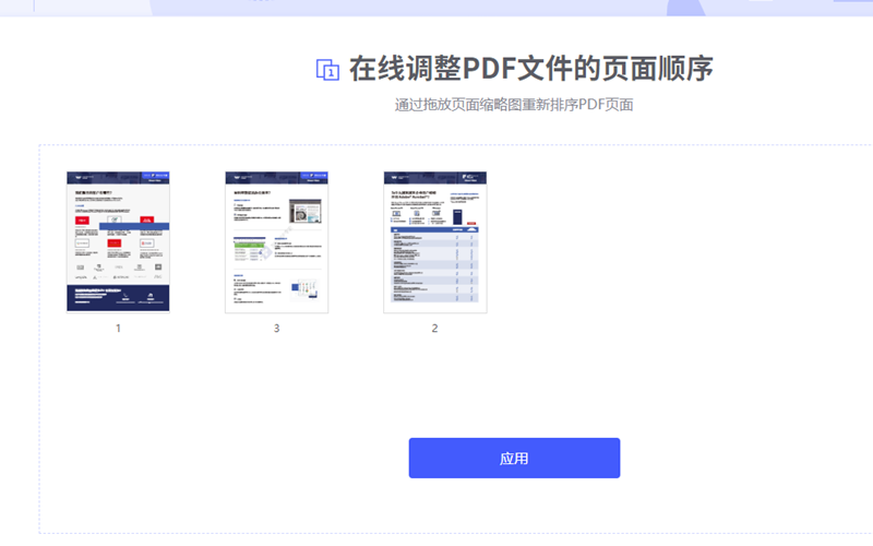 步骤3、在网站上的所有工具选项内找到并进入PDF页面排序功能界面。把合并后的文档上传到网站。在可视化在线调整PDF文件页面顺序功能窗口,把新页面和需要被代替的页面互换位置。把新生成的文件现在到本地。