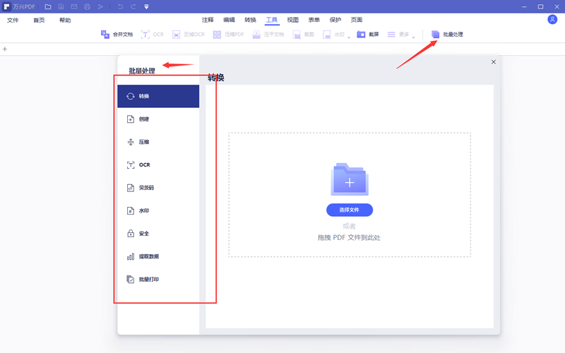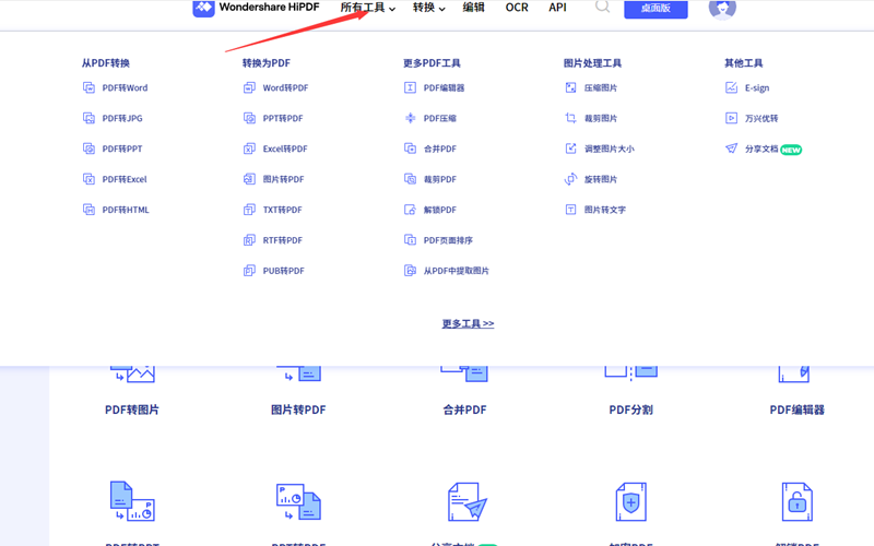 如果用户需要的是合并、压缩、转换、新建等针对整个文档的操作可以直接进入软件的首页,点击功能图标进入后根据提示操作即可。