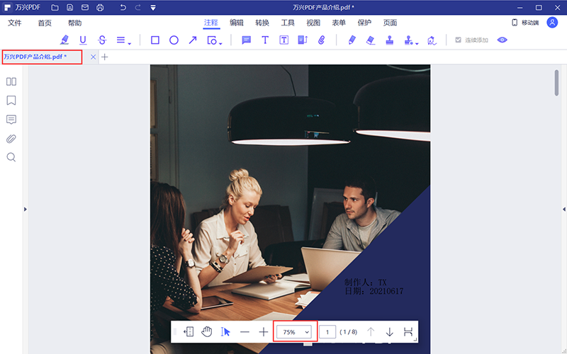小提示:你可以在阅读界面的右下角更改文档阅读的方式。如果你觉得PDF文档显示比例太小了,也可以在右小角更改显示比例,或者在按住Ctrl的同时滑动鼠标,也可以更改显示比例哦。