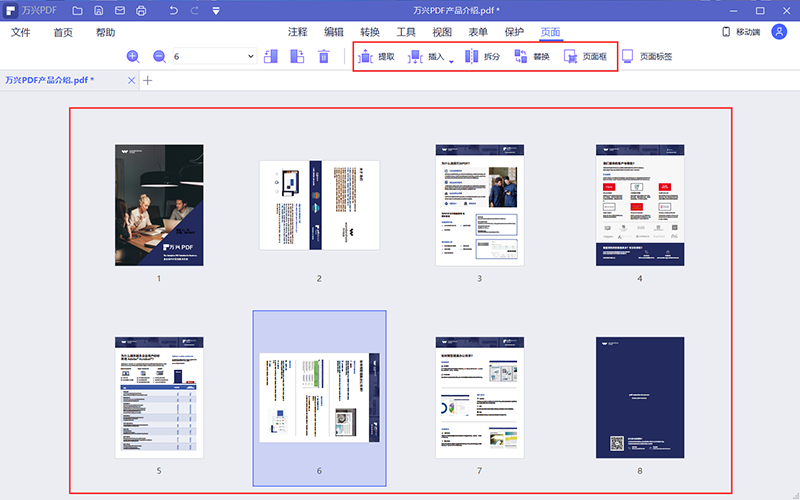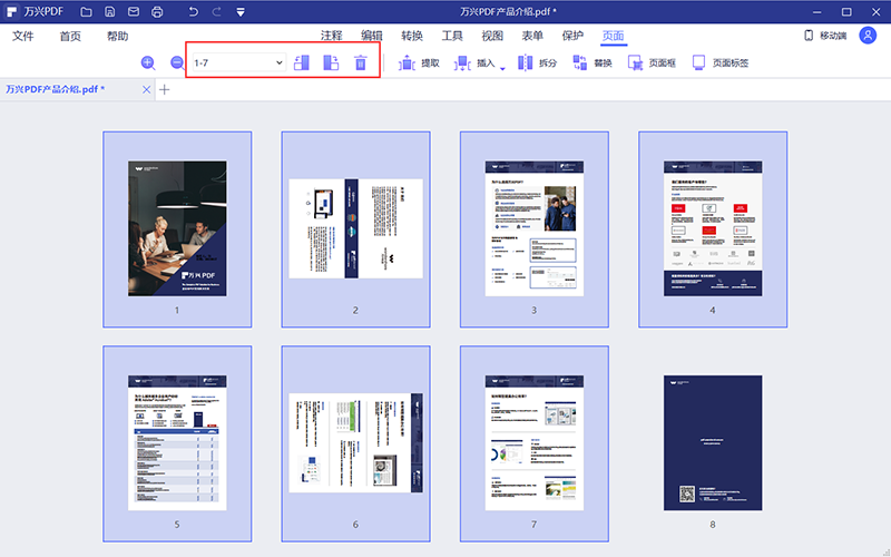 步骤二:选择上方的页面功能,你可以在这里对PDF文档的页面进行提取、插入、拆分等操作。如果需要旋转PDF文档的角度的话,直接选中需要调整角度的文档页面。然后单击旋转就可以了。
