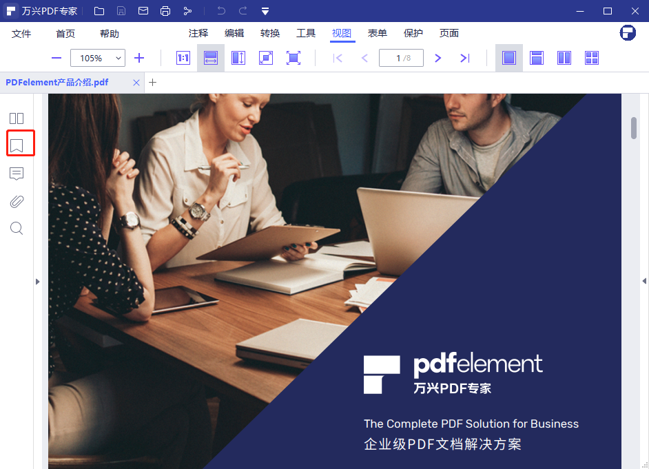 首先、您需要在需要拆分的PDF文件中设置书签。设置书签的方式是:找到需要设置书签的页面,然后在上方工具栏中找到“首页”,单击后在弹出的工具栏中点击“添加书签”。您也可以直接在界面左侧点击书签标志。这样书签就设置完毕了。